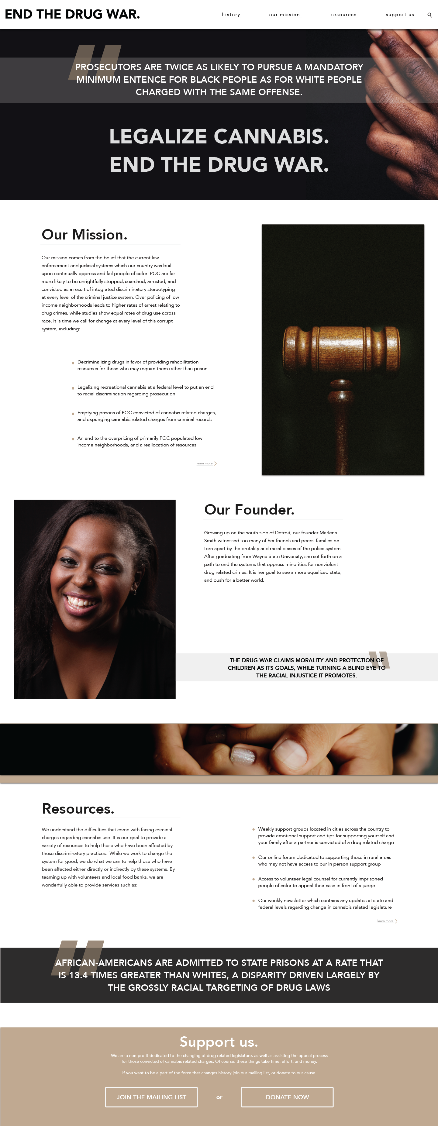 For far too long in the United States, people of color have been unfairly targeted for drug related crimes by the criminal justice system. This campaign aims to approach how we can motivate change regarding the heavily discriminatory practice of police drug searches and arrests in low-income neighborhoods. These communities are targeted for drug related crimes at a disproportionate rate to higher income neighborhoods with more predominantly white populations.
